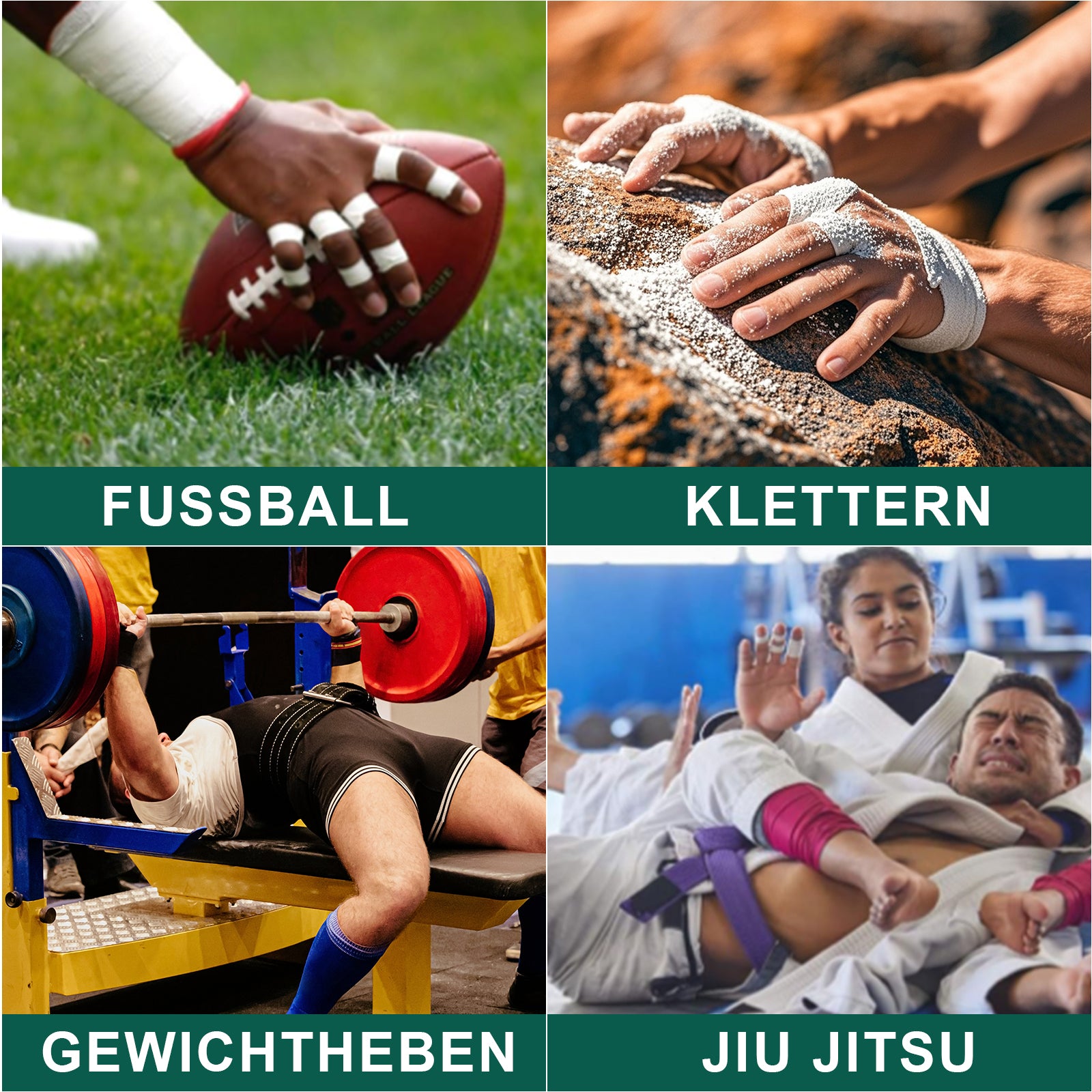 - Jede Packung enthält 3 Rollen Fingertape, jede 1,5 cm breit – ideal für sichere Fixierung zwischen Fingergliedern und Sehnenunterstützung.