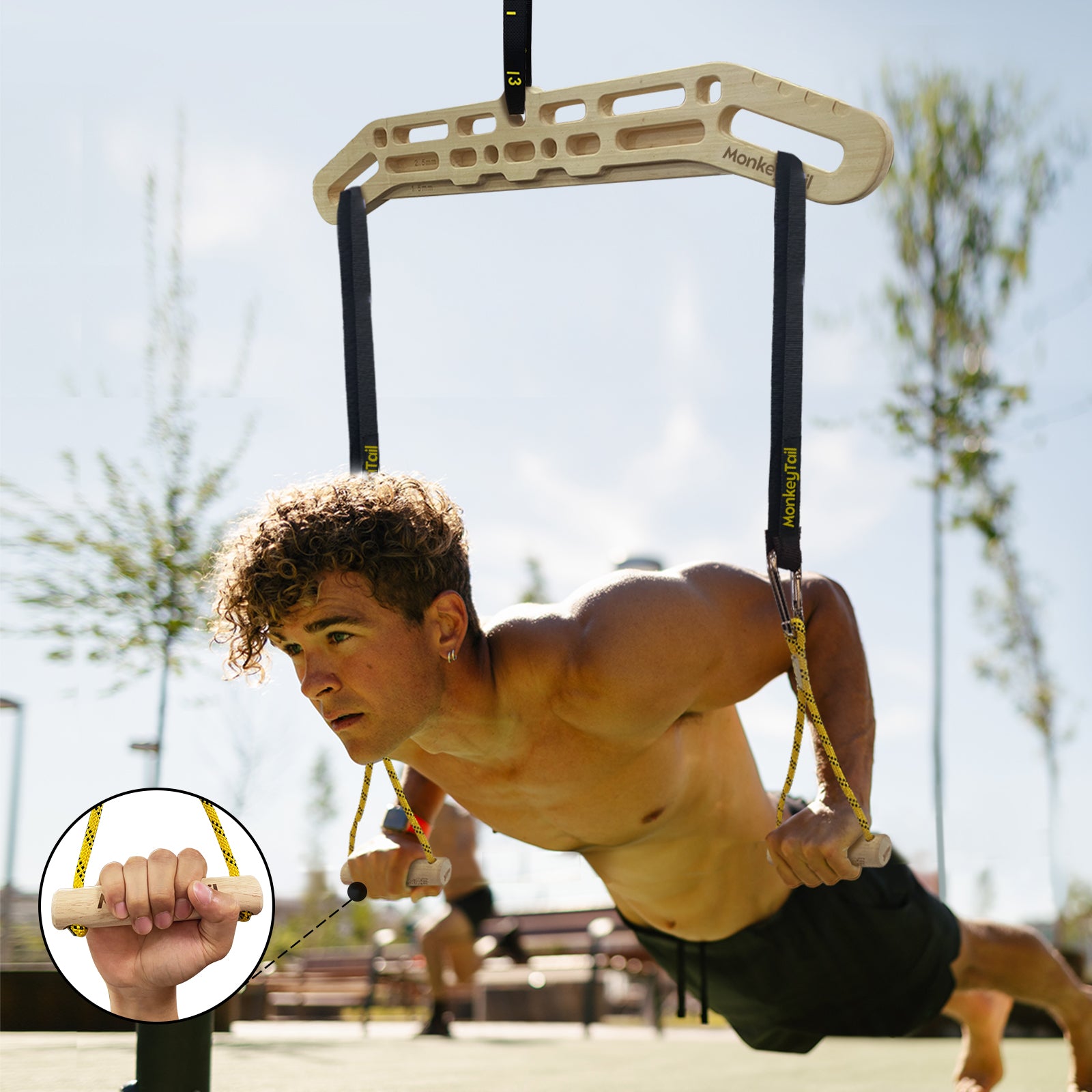 Superior Material & Superb Load-Bearing: The hangboard and handles are made of boxwood with rounded edges and non-slip treatment to provide a safe grip during training, and the texture is rounded and feels great, so it won't scratch your skin. Together with the strong nylon webbing and mountaineering static rope, the load-bearing capacity is as high as 200kg to meet the needs of trainers of different weights, and make the training safer.